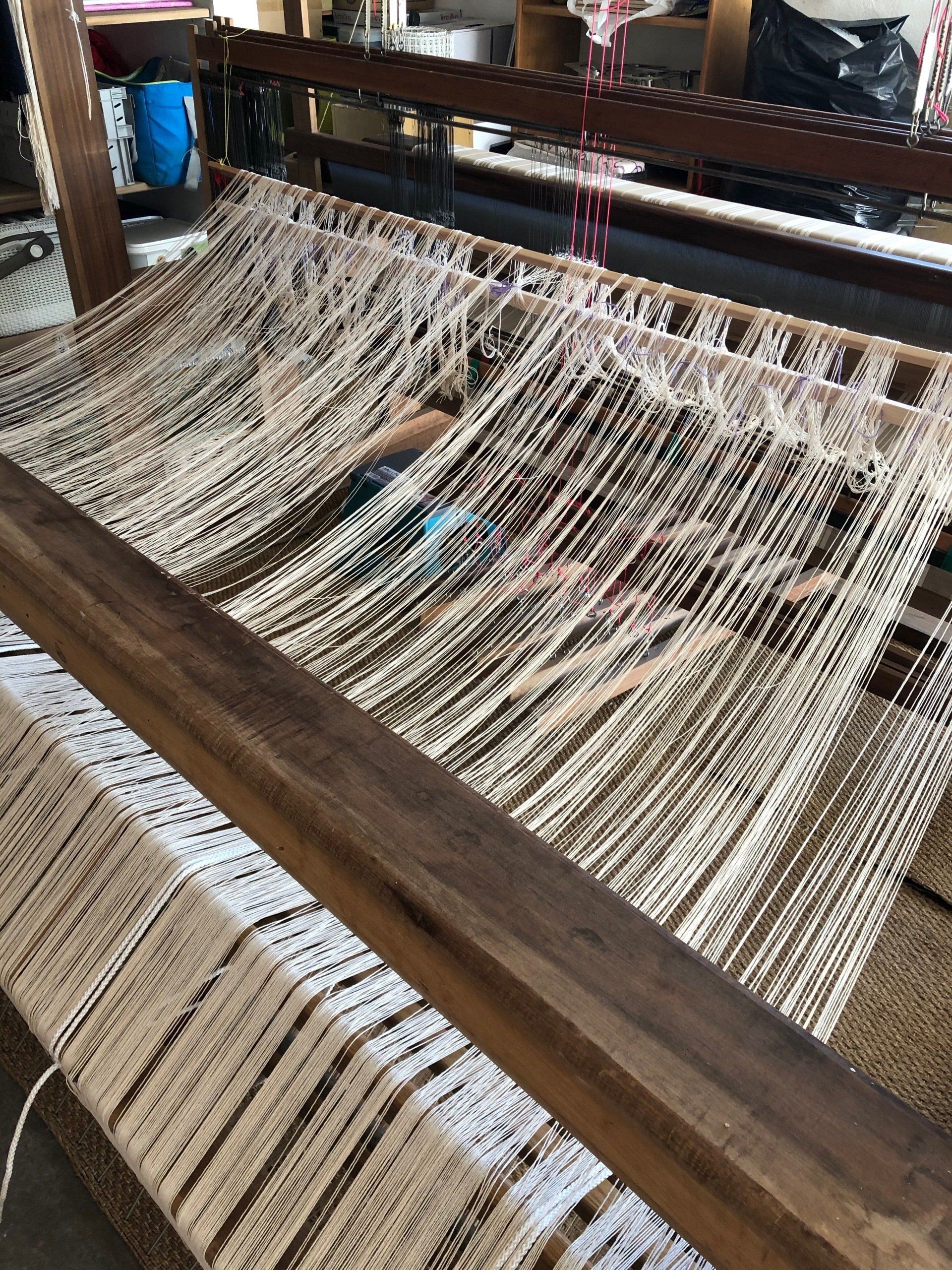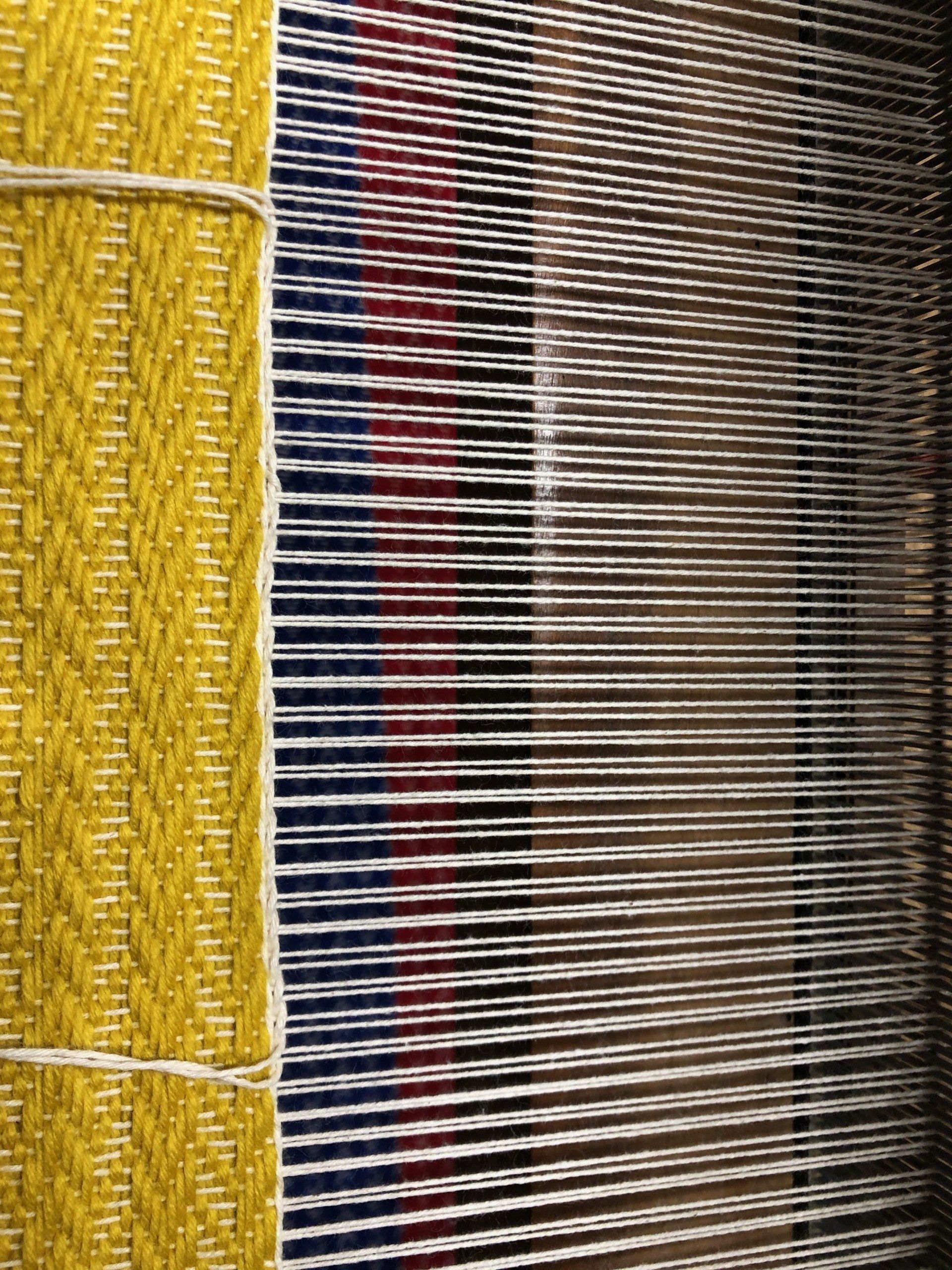 Envoi des photos par mail ou sms au fur et à mesure de la réalisation. Ici la commande d'un jeté de canapé 180x200cm en 100% mérinos en cours de réalisation après validation d'un échantillon pour le choix du tissage, des motifs et des couleurs.